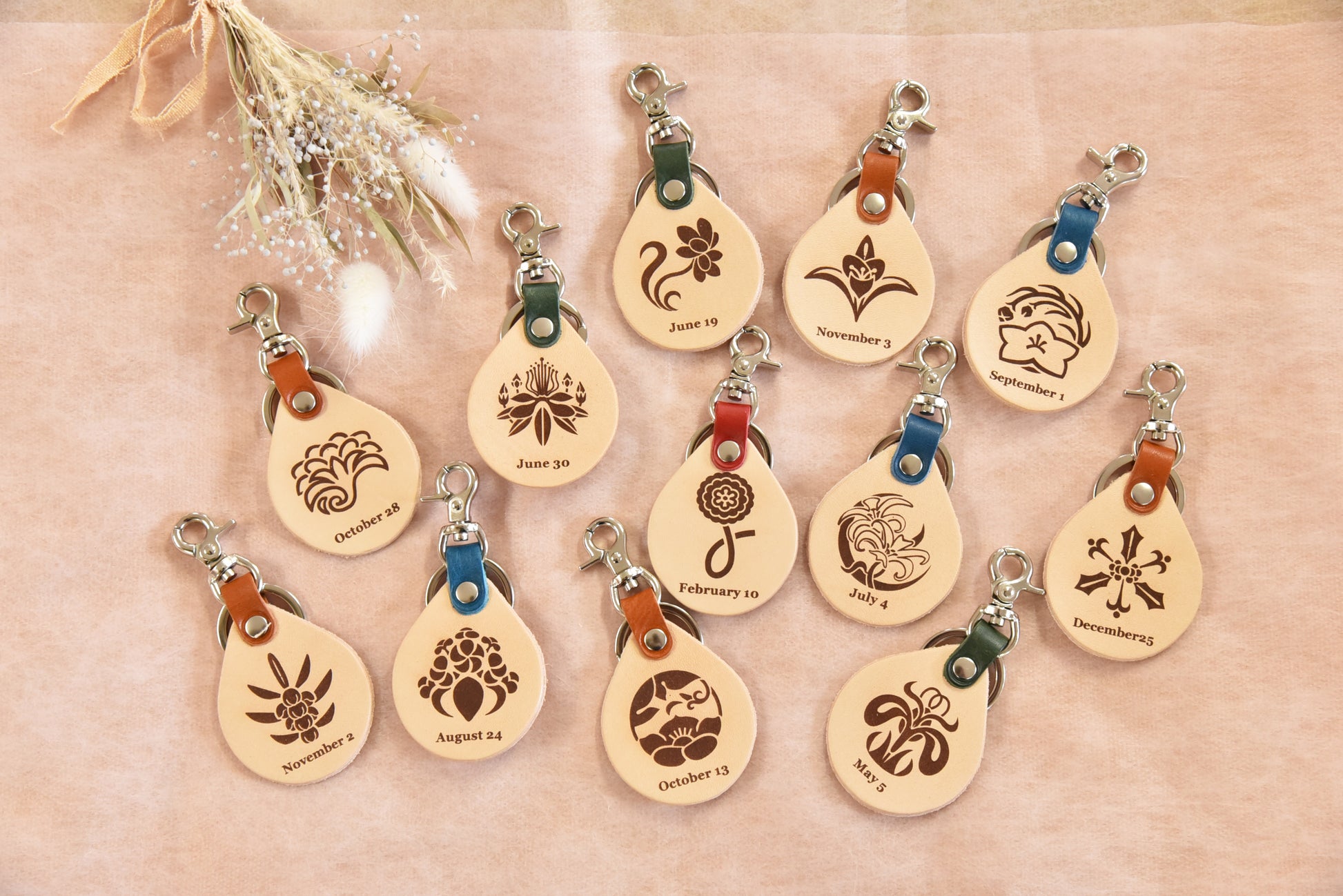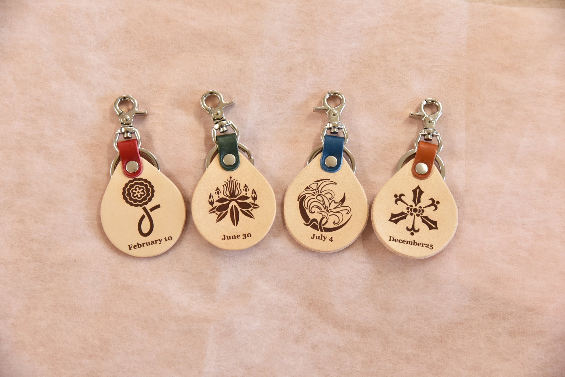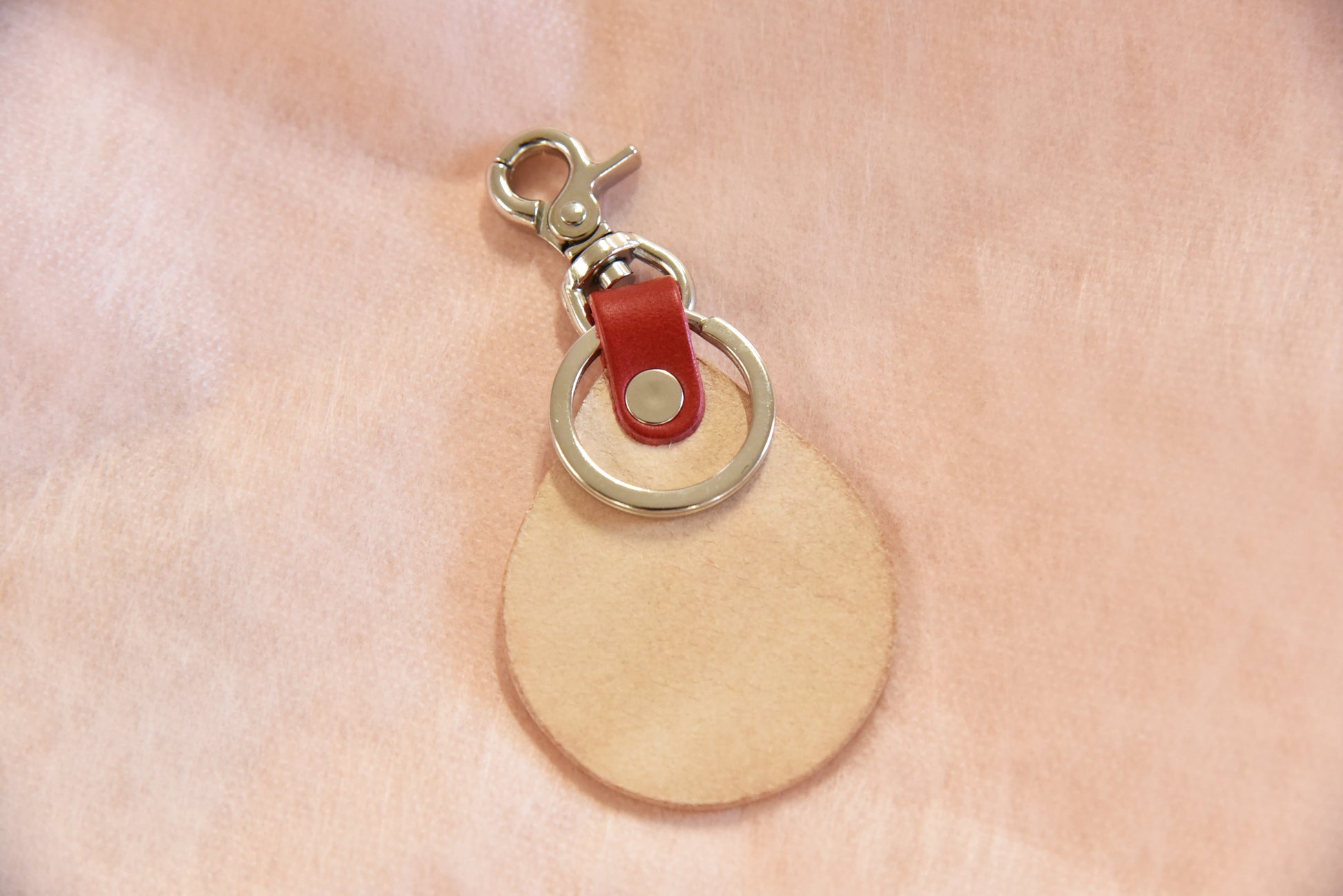 キーホルダー本体には近江牛レザーのヌメ革を使用。