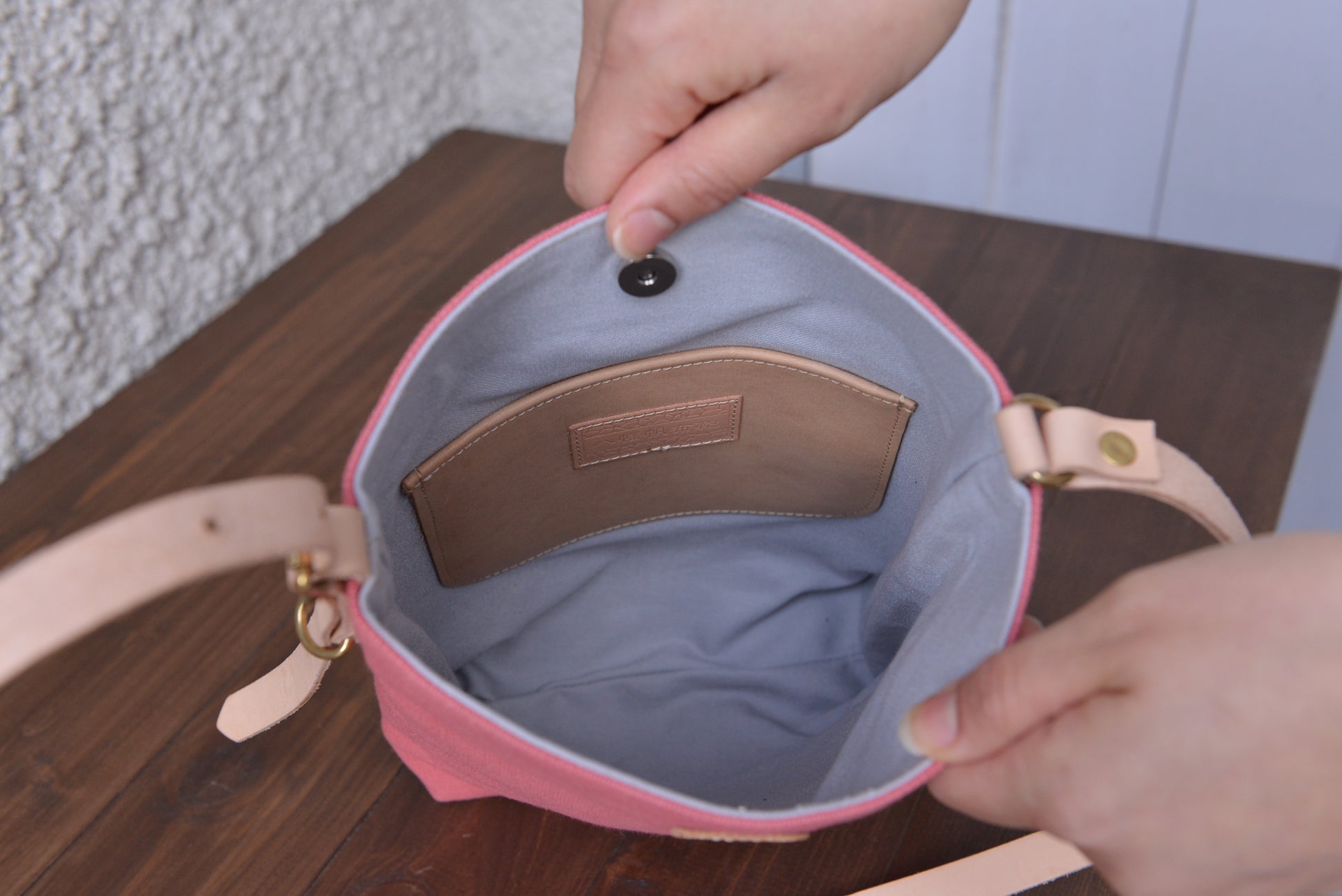 内側には同じく牛革を使ったポケットを設け、小物の収納にも便利。