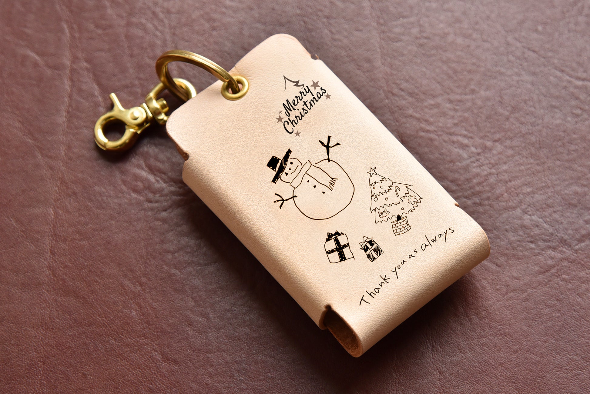 レーザー彫刻で子供の描いたイラストやメッセージ、 写真などを入れることができます。革は長く愛用できる素材で、使うほどに味が出てきます。
